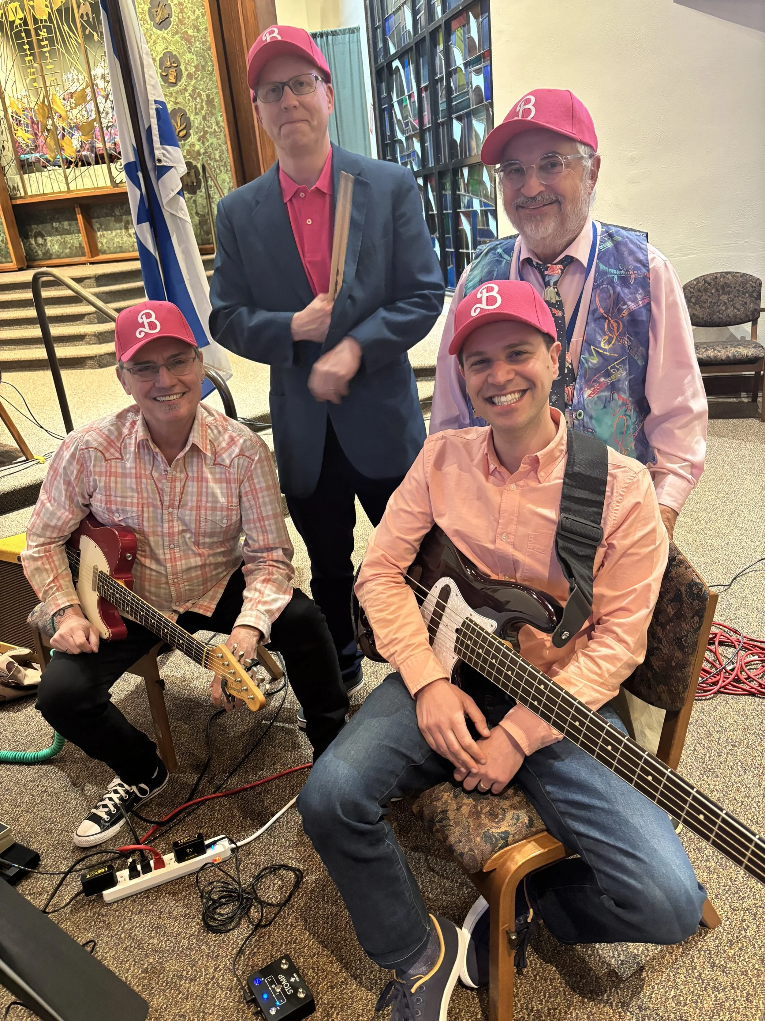 Purim band: Kenny Brescia, guitar; Glen Fittin, drums; Corey Schutzer, bass: and myself, piano/music director.